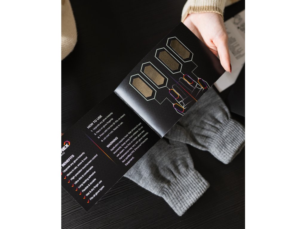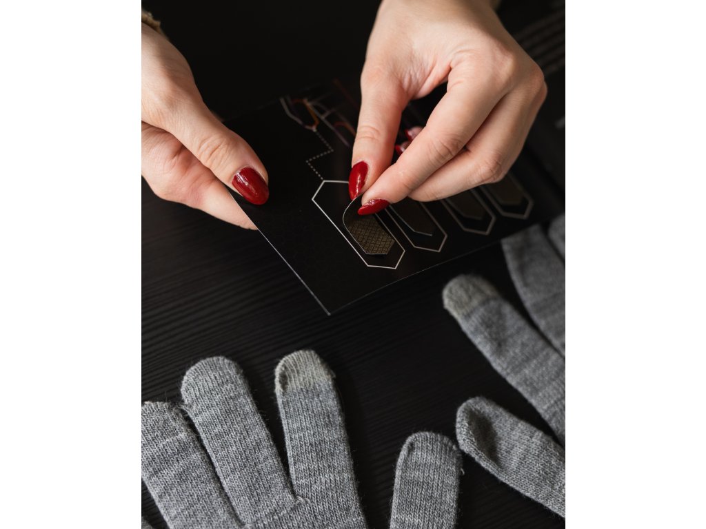 GLOVELY – funkční nažehlovačky s vodivou vrstvou. Jednoduše, rychle a za pár korun – a přitom stále stylově a prakticky. Už žádné studené prsty při používání telefonu venku, žádné kompromisy mezi teplem a funkčností. GLOVELY je chytrý, levný a zábavný doplněk, který ti usnadní zachytit každodenní zimní radosti bez nutnosti sundávání rukavic. GLOVELY jsou ultratenké nažehlovačky s vodivou vrstvou, které stačí nažehlit na palec a ukazovák – a během pár sekund jsi ready na „tap“ i „swipe“.